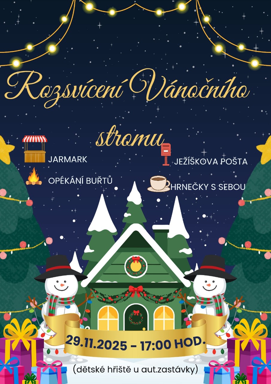 V sobotu 29. listopadu od 17:00 proběhne u autobusové zastávky rozsvícení Vánočního stromu. Dále se můžete těšit na jarmark, kde si můžete zakoupit vánoční dekorace vyrobené dětmi na dílničkách, Ježíškovu poštu a také si můžete opéci buřty na novém obecním ohništi. Těšíme se na Vás.