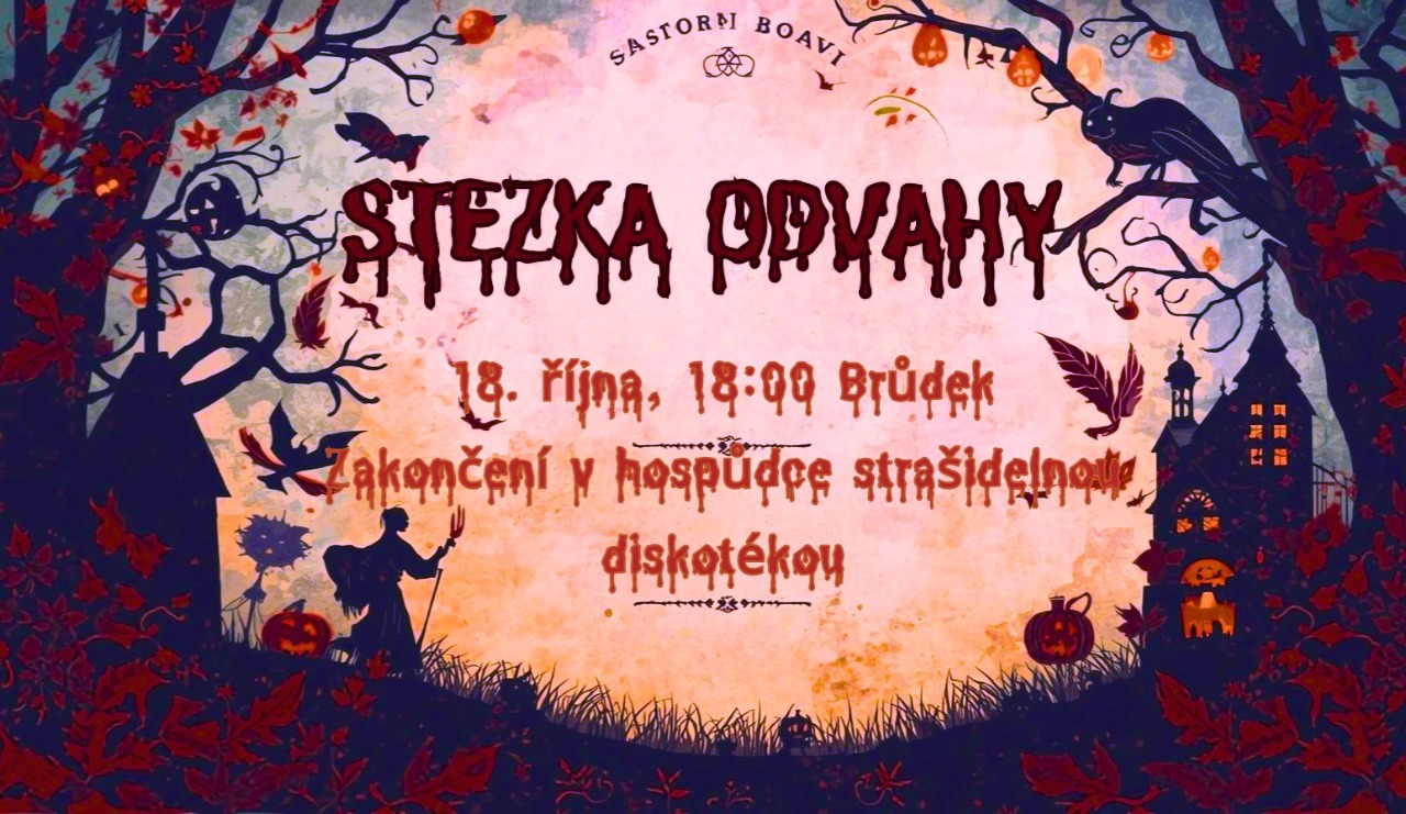 V sobotu 18. října od 18:00 hod proběhne Stezka odvahy. Startujeme od Brůdku, zakončení je v obecním pohostinství U Věčné žízně s diskotékou. V případě nepříznivého počasí se děti přesunou rovnou na diskotéku.